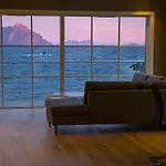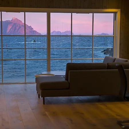Die 9-Zimmer- Lofoten Panorama verfügt über eine Sonnenterrasse mit Blick aufs Meer und ist 21 Autominuten vom Flughafen Leknes entfernt gelegen.